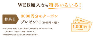 - WEB加入で3,000円分クーポン
