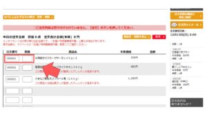 注文番号の商品と数量の入力画面