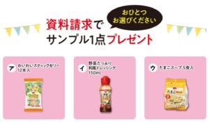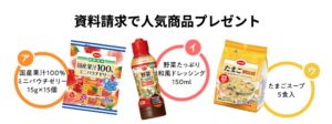 | プレゼント | 資料請求で人気食品1品無料 | サンプルセット(生協による) |