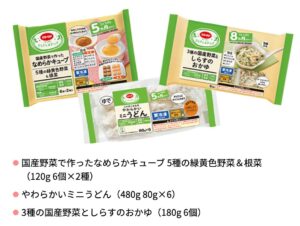 • お試しBセット(離乳食:500円):野菜キューブ、おかゆ、やわらかうどんなど3品